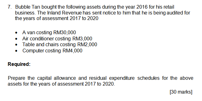 Solved 7. Bubble Tan bought the following assets during the