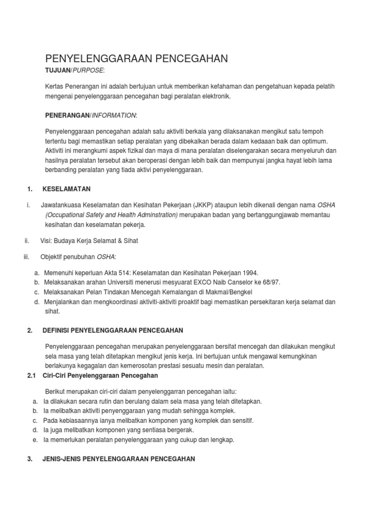 Contoh Laporan Penyelenggaraan Mesin - Lilliangck