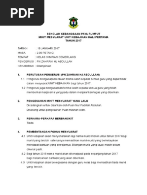 Minit Mesyuarat Unit Kebajikan 1 2017 PDF